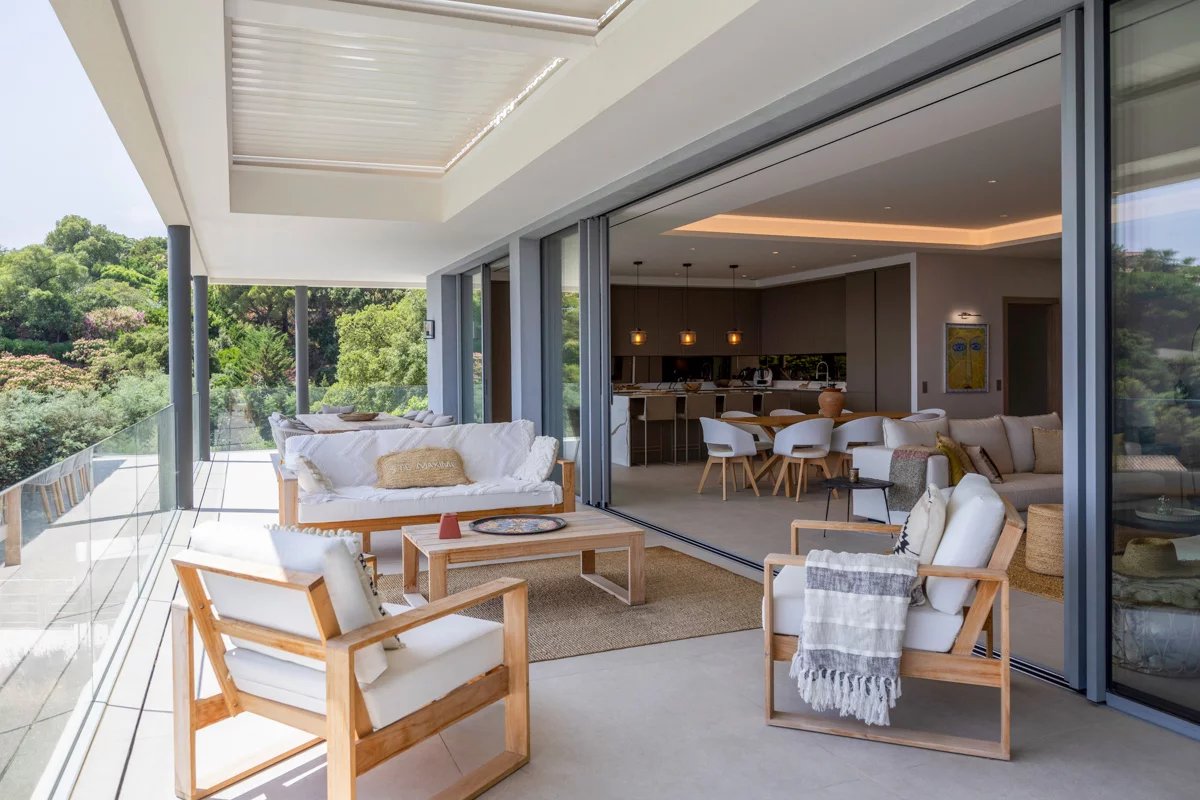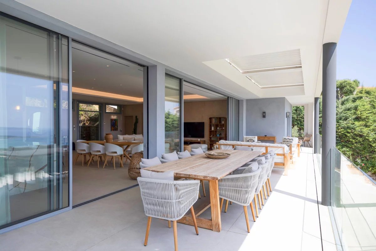 Dieses außergewöhnliche Anwesen von ca. 300 m² bietet einen Panoramablick durch seine Schiebefenster und von seiner großen überdachten Terrasse von ca. 60 m². Es besteht aus einem geräumigen Wohn- und Esszimmer mit offener Küche. Auf dieser Etage befinden sich außerdem die Mastersuite und eine Gästetoilette. Alle Etagen sind mit einem Aufzug erreichbar. Im Gartengeschoss finden Sie einen Entspannungsbereich, eine Waschküche und 4 Schlafzimmer mit eigenem Bad. Alle Zimmer bieten einen herrlichen Blick auf das Meer. Im Garten befindet sich ein schöner Pool mit ausreichend Platz für Sonnenliegen. Interessiert? Zögern Sie nicht, uns zu kontaktieren.