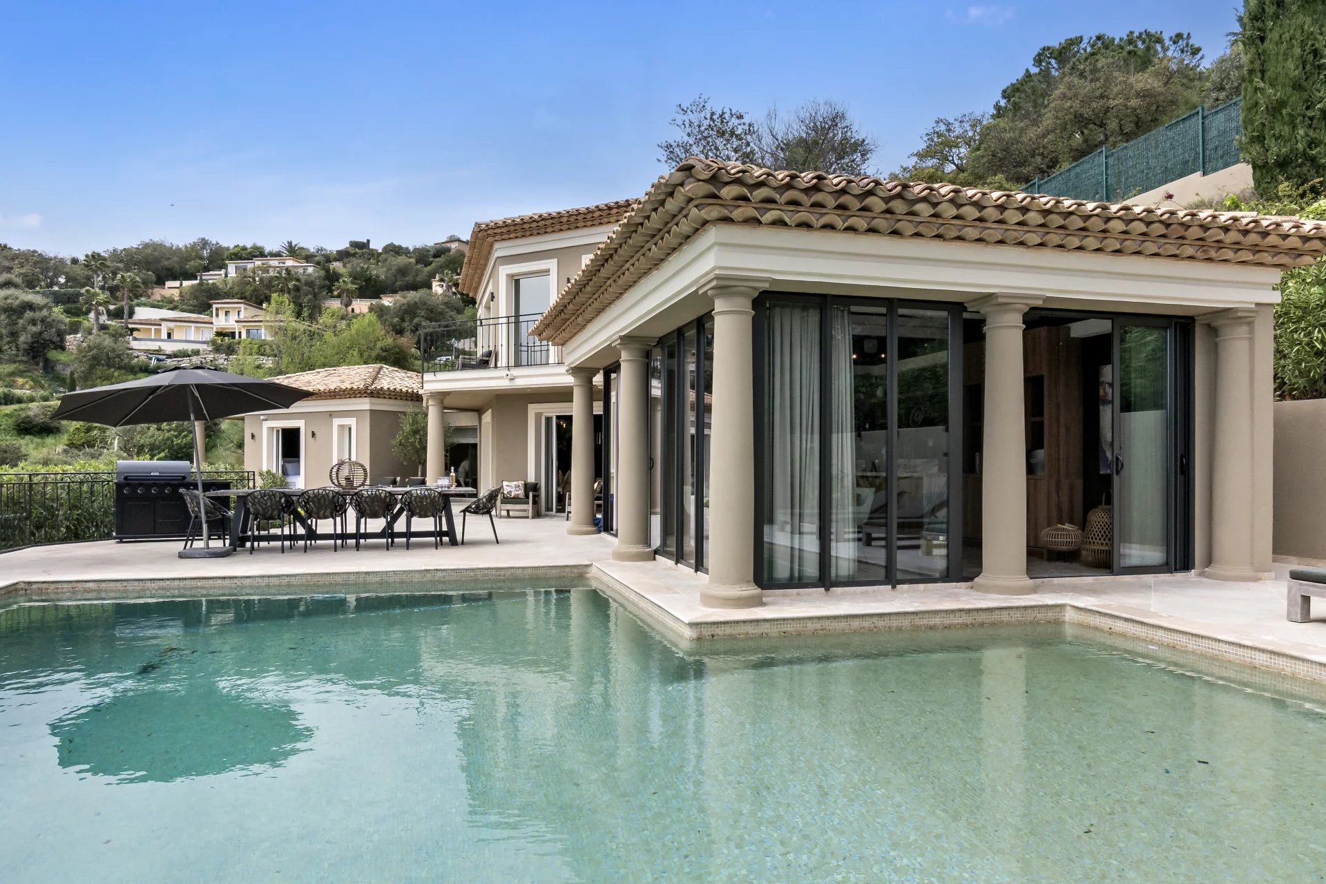 Diese atemberaubende Villa in der bezaubernden Gegend von Sainte Maxime bietet dank ihrer einzigartigen Lage am Golfplatz und der Nähe zu den ikonischen Sehenswürdigkeiten von Saint-Tropez ein außergewöhnliches Wohnerlebnis. Die Ruhe der grünen Umgebung, kombiniert mit der lebhaften Atmosphäre der Côte d'Azur, macht diese Villa zu einem Traumort für diejenigen, die eine perfekte Balance zwischen Entspannung und Unterhaltung suchen.
