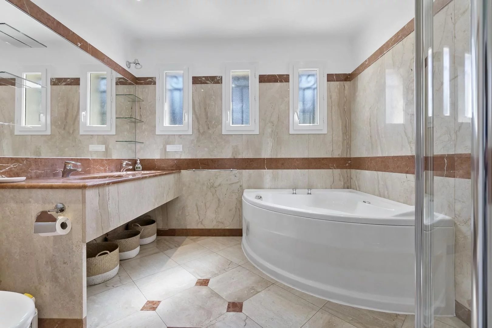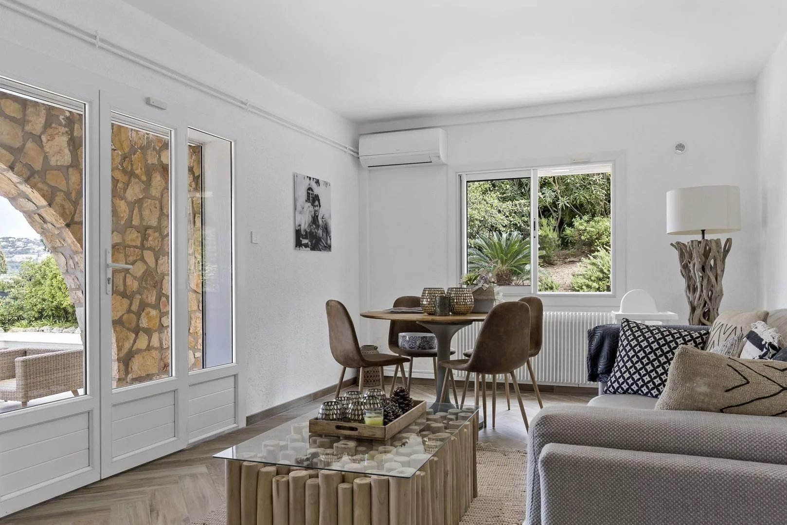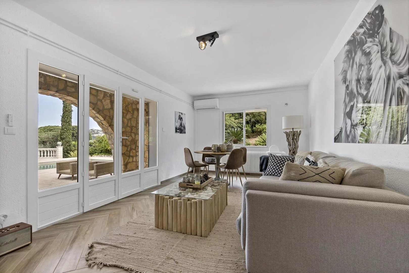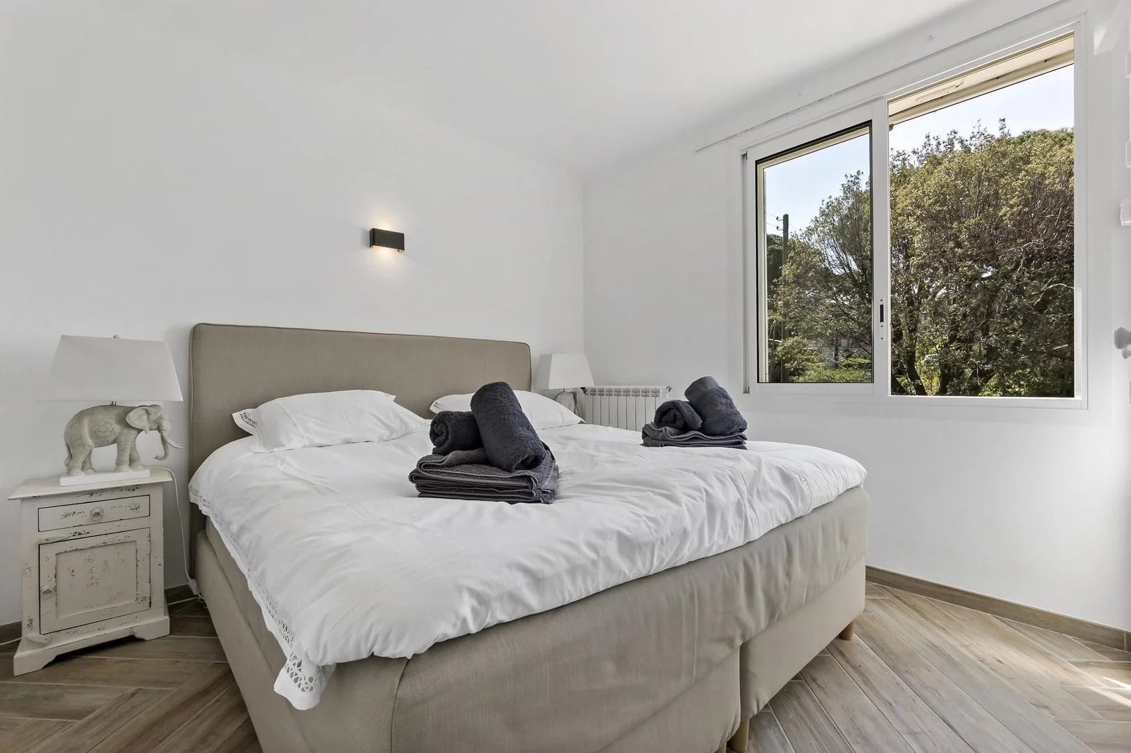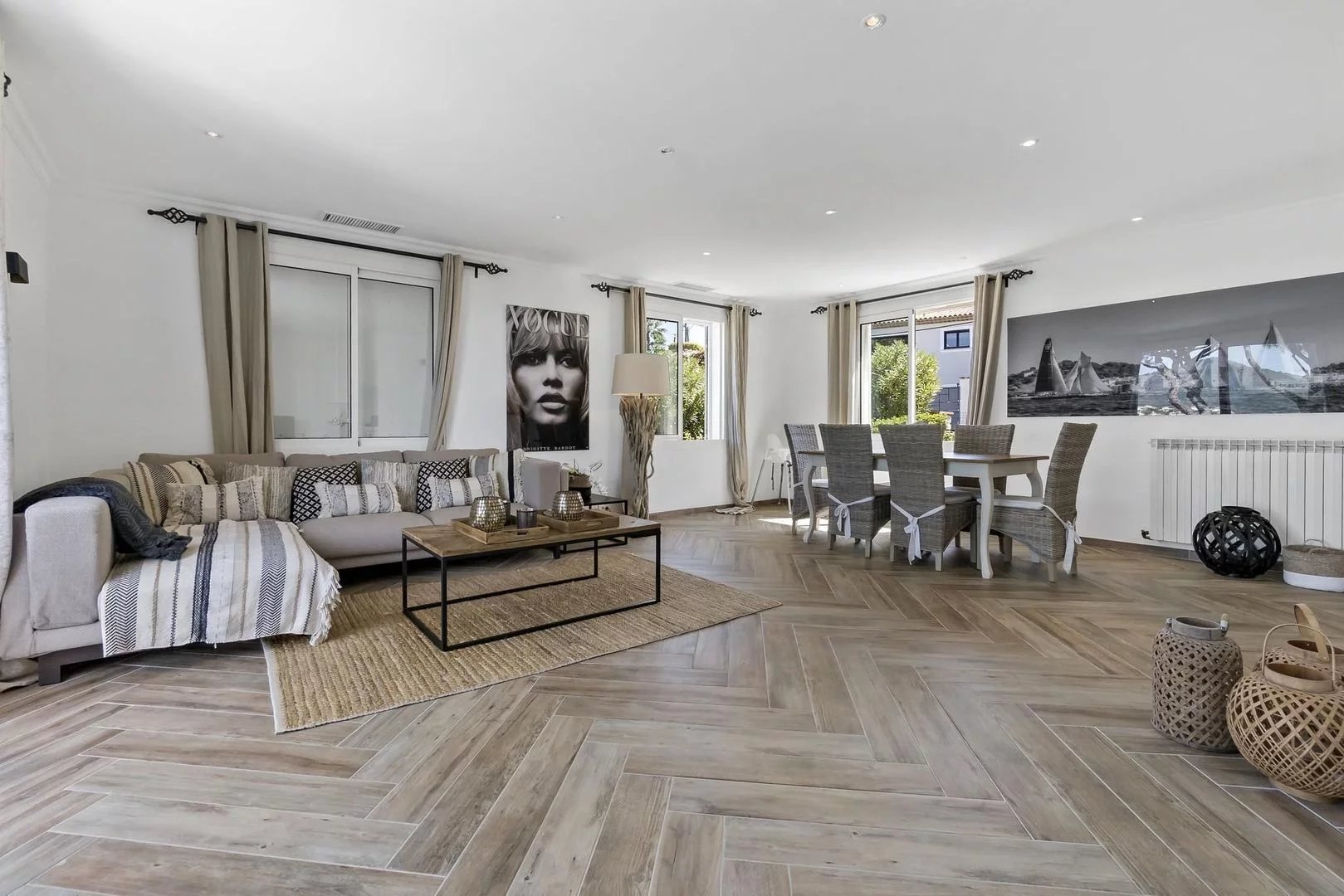 Geräumige Villa mit einer Wohnfläche von 230 m² und insgesamt 5 Schlafzimmern, auf einem Grundstück von ca. 1870 m² mit schönem Schwimmbad. Die Villa ist derzeit in 3 individuelle Wohnungen aufgeteilt, jede mit eigenem Eingang. Die Wohnungen sind alle klimatisiert. Die Villa hat eine ideale Lage: nur wenige Gehminuten vom Zentrum des lebendigen Dorfes Sainte-Maxime (mit seinen Geschäften, Galerien, Restaurants, etc.) sowie von den Stränden (La Madrague & La Nartelle) entfernt. Es besteht die Möglichkeit, diese Immobilie in eine Villa mit 7 Schlafzimmern umzubauen.