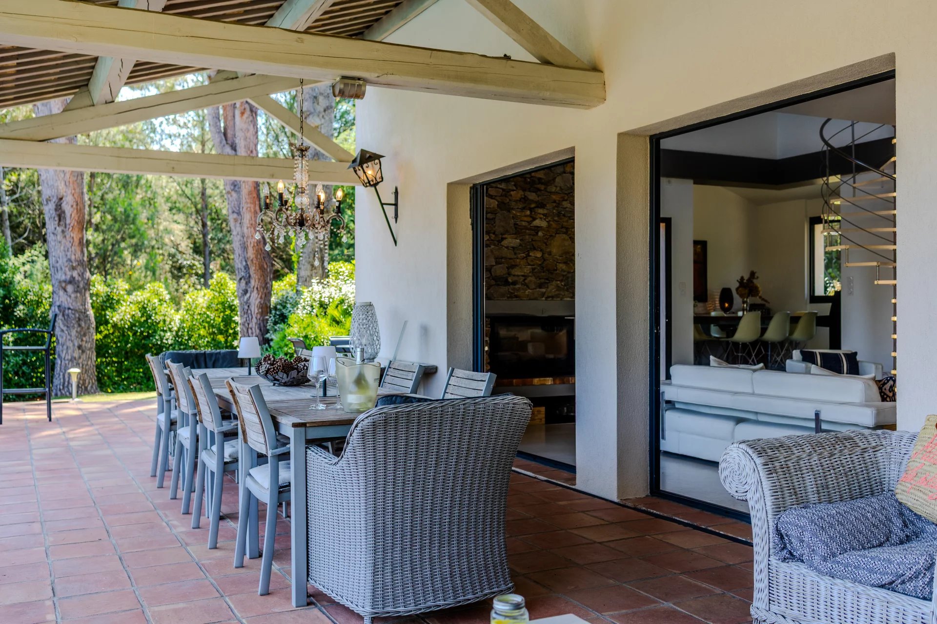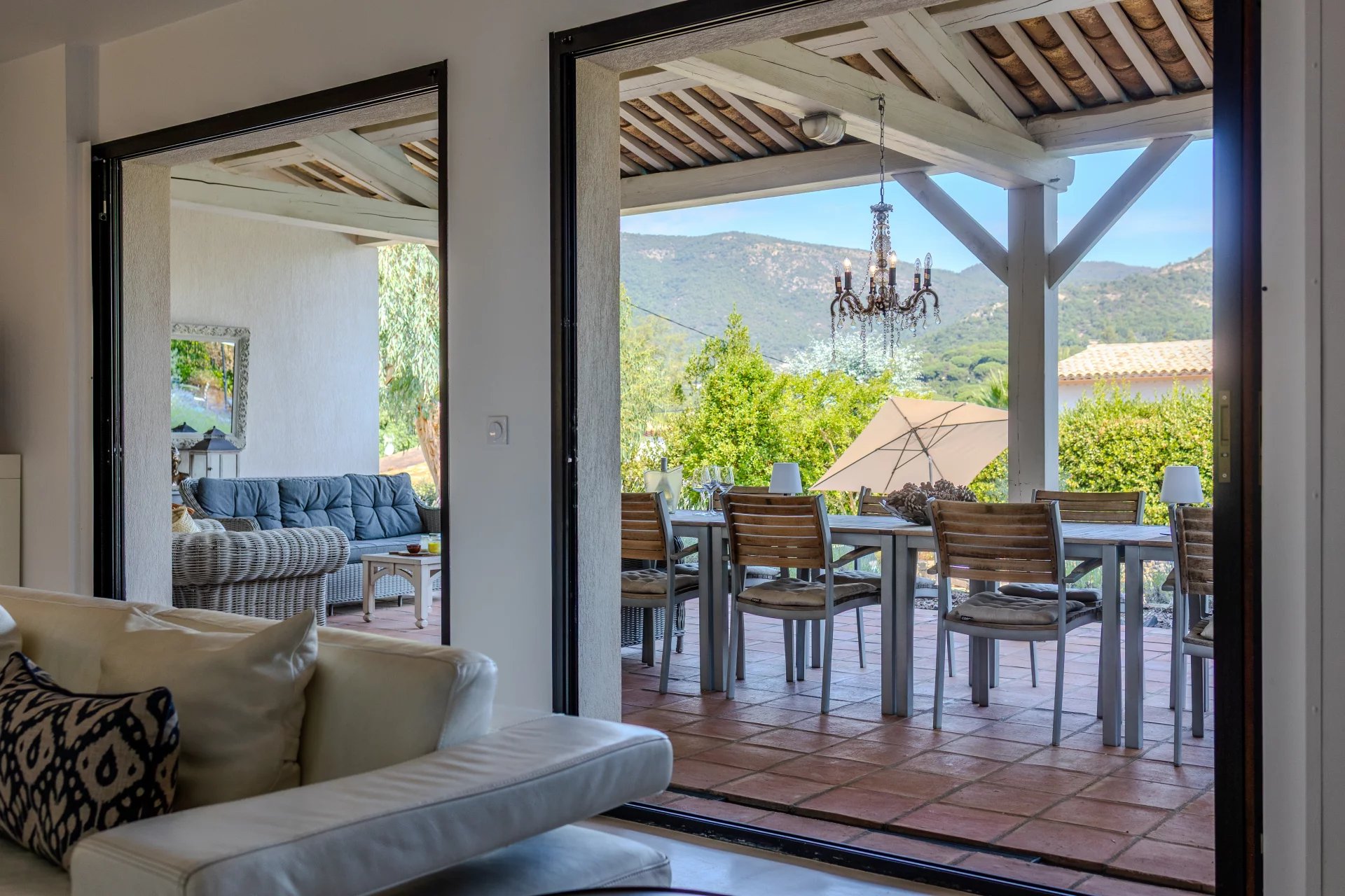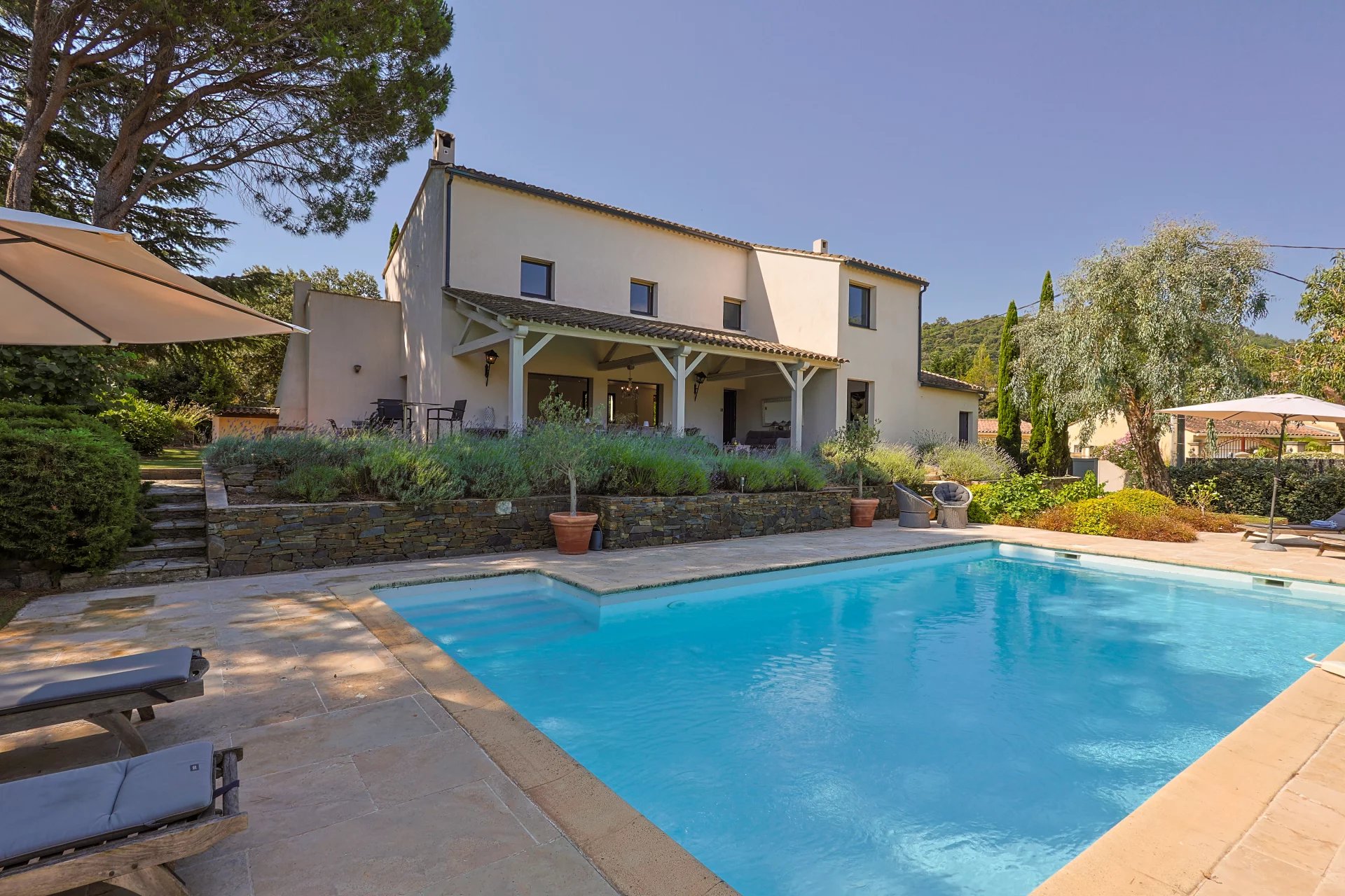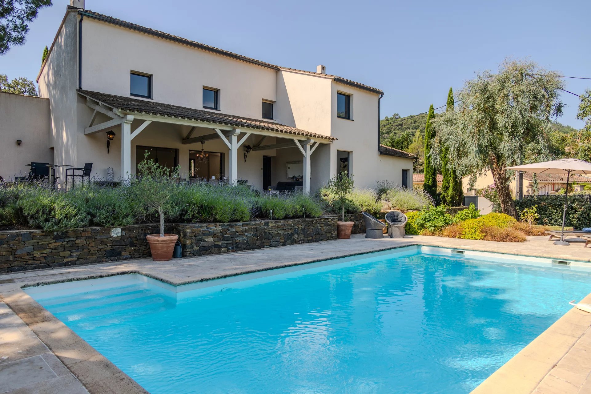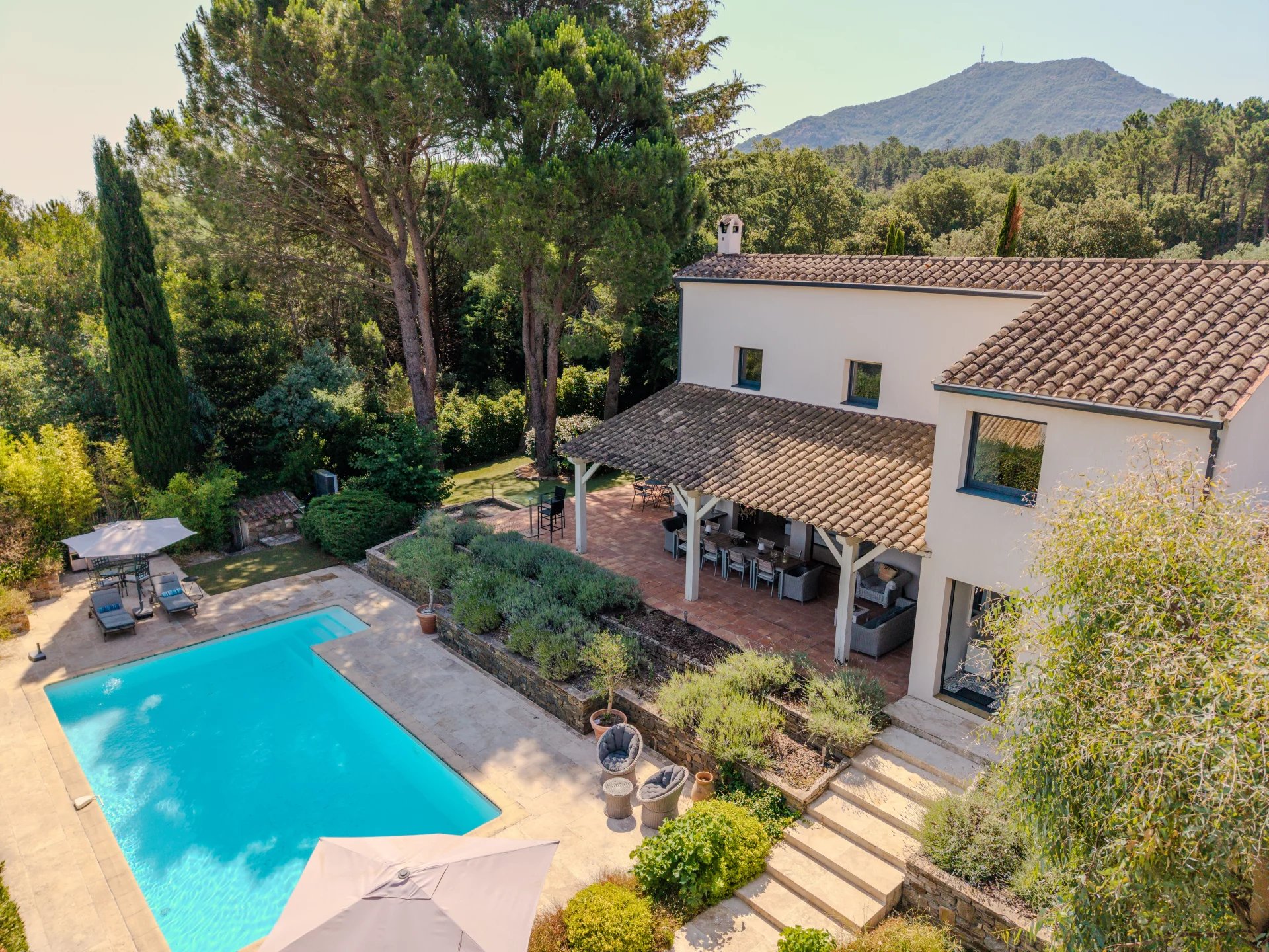 EXCLUSIVE SALE by Med Estates: Discover this villa in Le Plan de la Tour, located in a quiet hamlet on a 1,350 m² plot of beautifully landscaped gardens surrounding a pristine 12 x 6 m heated pool. This 160 m² property offers the perfect vacation retreat or family home, featuring three comfortable ensuite bedrooms and a large lounge with a separate dining area flanked by a cozy stone fireplace. The lounge leads to a shaded, covered terrace overlooking the pool, offering seamless indoor-outdoor living space in both winter and summer. There is a mezzanine area that is ideal for a TV room or could be converted into an additional bedroom. The property also includes a fourth bathroom with access to the pool, along with storage and a laundry room. The garage is equipped with electric doors and has a loft area for extra storage. The entrance is secured by electric gates, and the property is fully fenced. There is a possibility of extension according to the PLU, as it is located in zone UC.