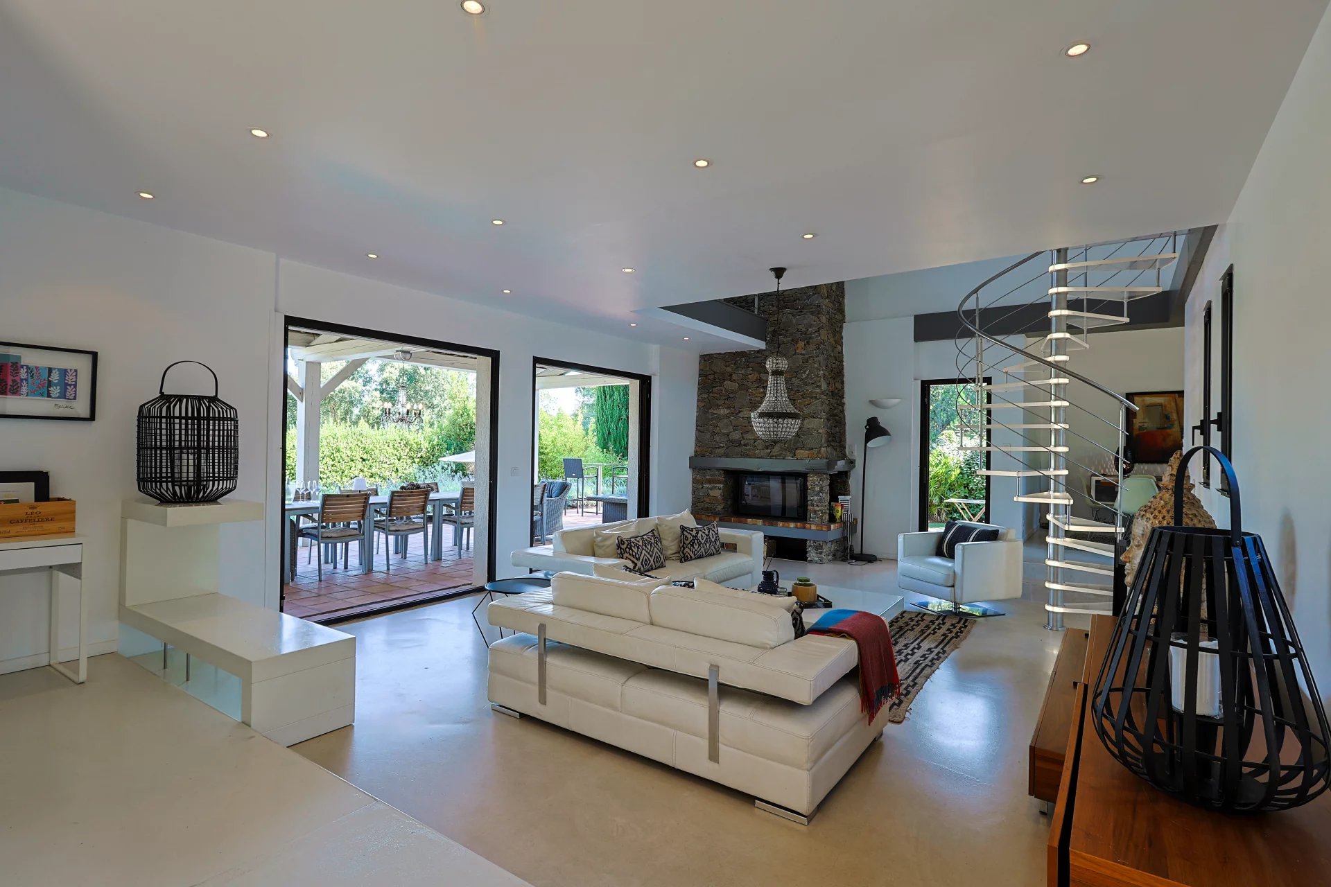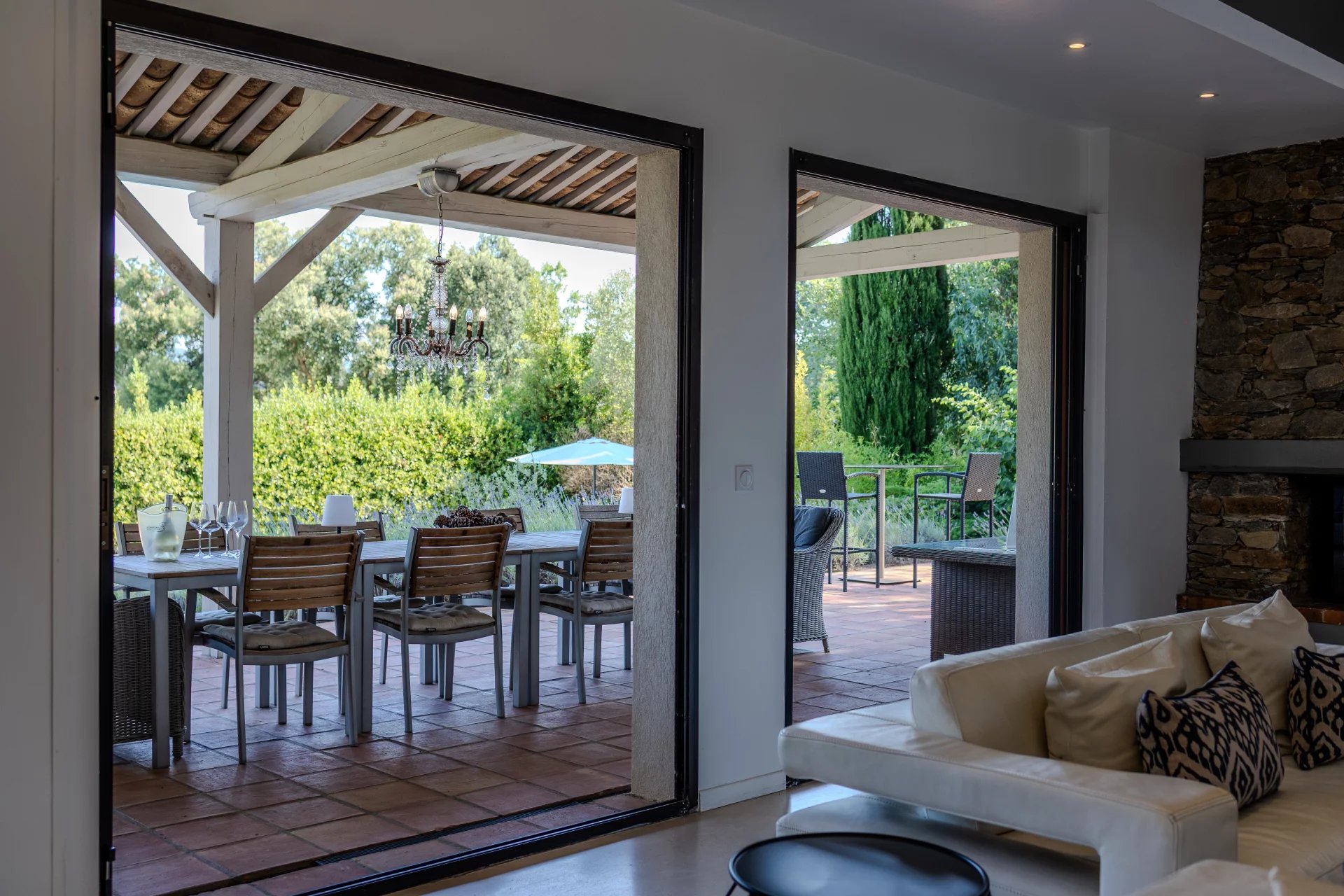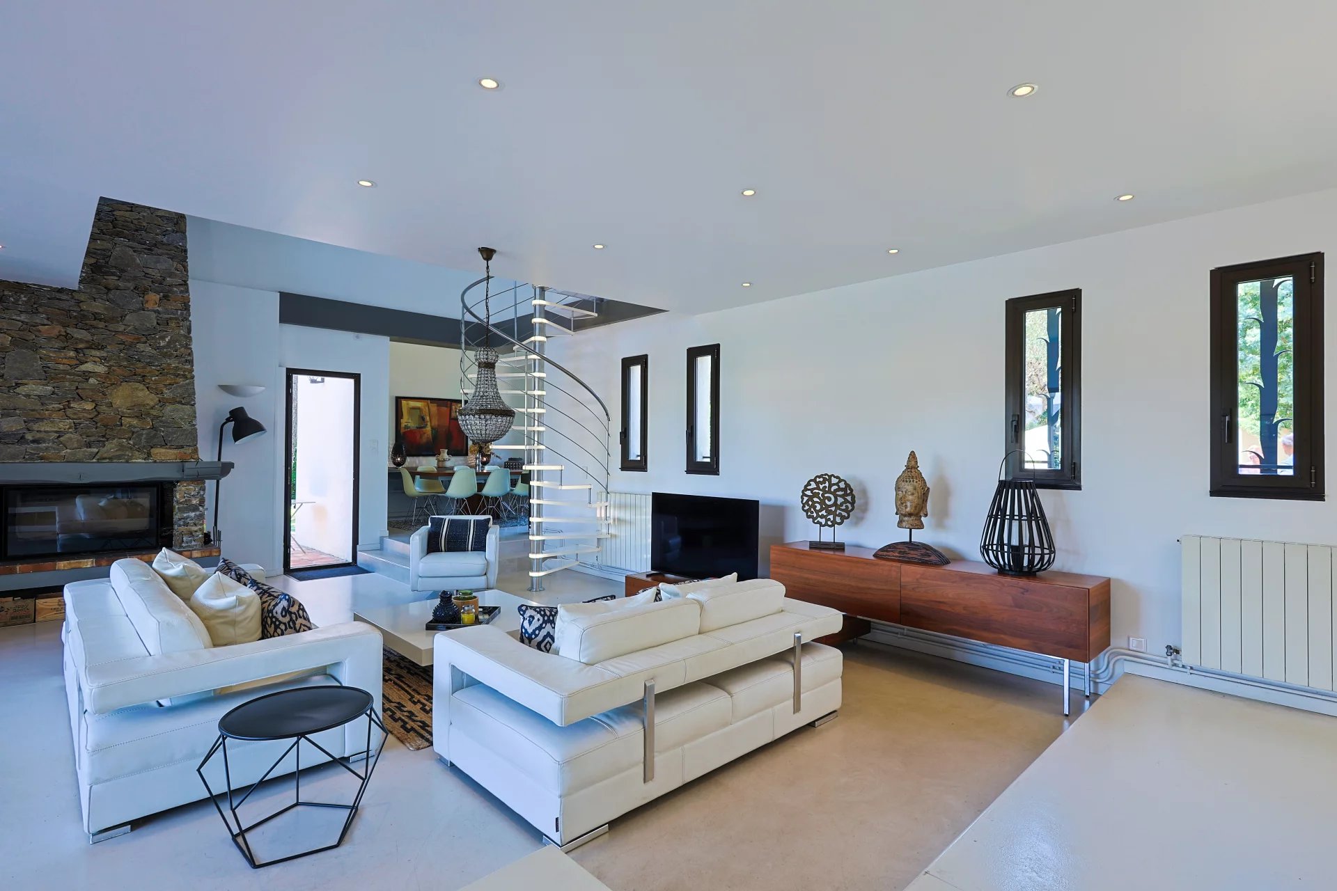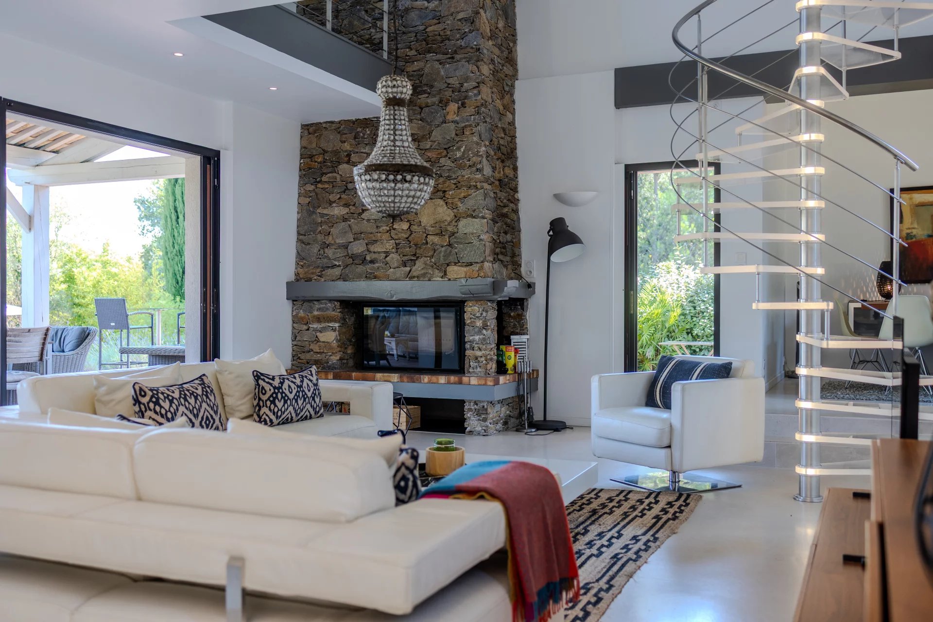 EXCLUSIVE SALE by Med Estates: Discover this villa in Le Plan de la Tour, located in a quiet hamlet on a 1,350 m² plot of beautifully landscaped gardens surrounding a pristine 12 x 6 m heated pool. This 160 m² property offers the perfect vacation retreat or family home, featuring three comfortable ensuite bedrooms and a large lounge with a separate dining area flanked by a cozy stone fireplace. The lounge leads to a shaded, covered terrace overlooking the pool, offering seamless indoor-outdoor living space in both winter and summer. There is a mezzanine area that is ideal for a TV room or could be converted into an additional bedroom. The property also includes a fourth bathroom with access to the pool, along with storage and a laundry room. The garage is equipped with electric doors and has a loft area for extra storage. The entrance is secured by electric gates, and the property is fully fenced. There is a possibility of extension according to the PLU, as it is located in zone UC.