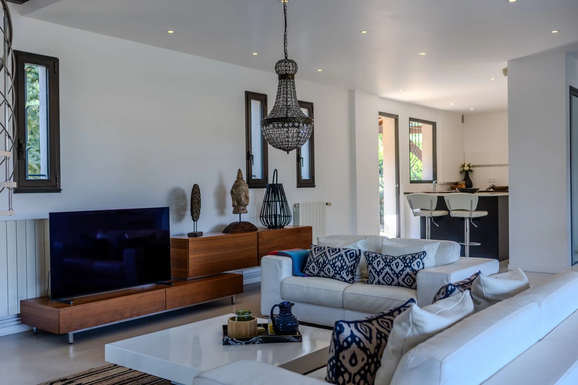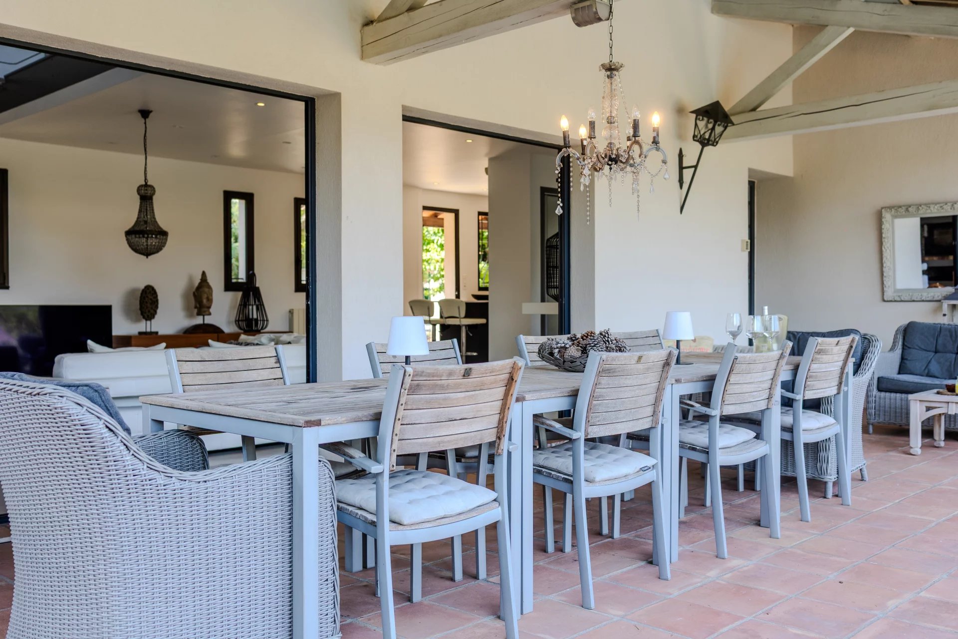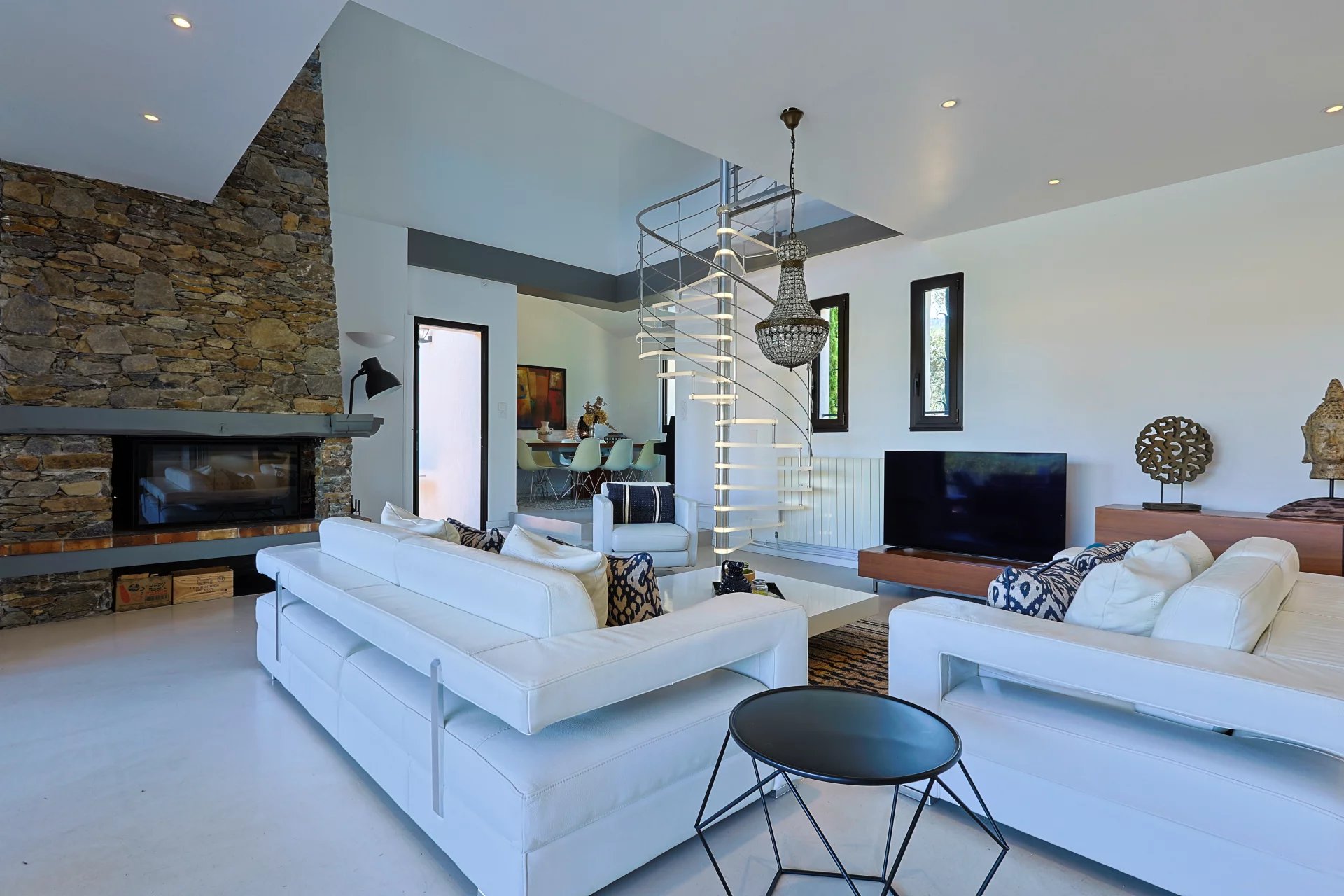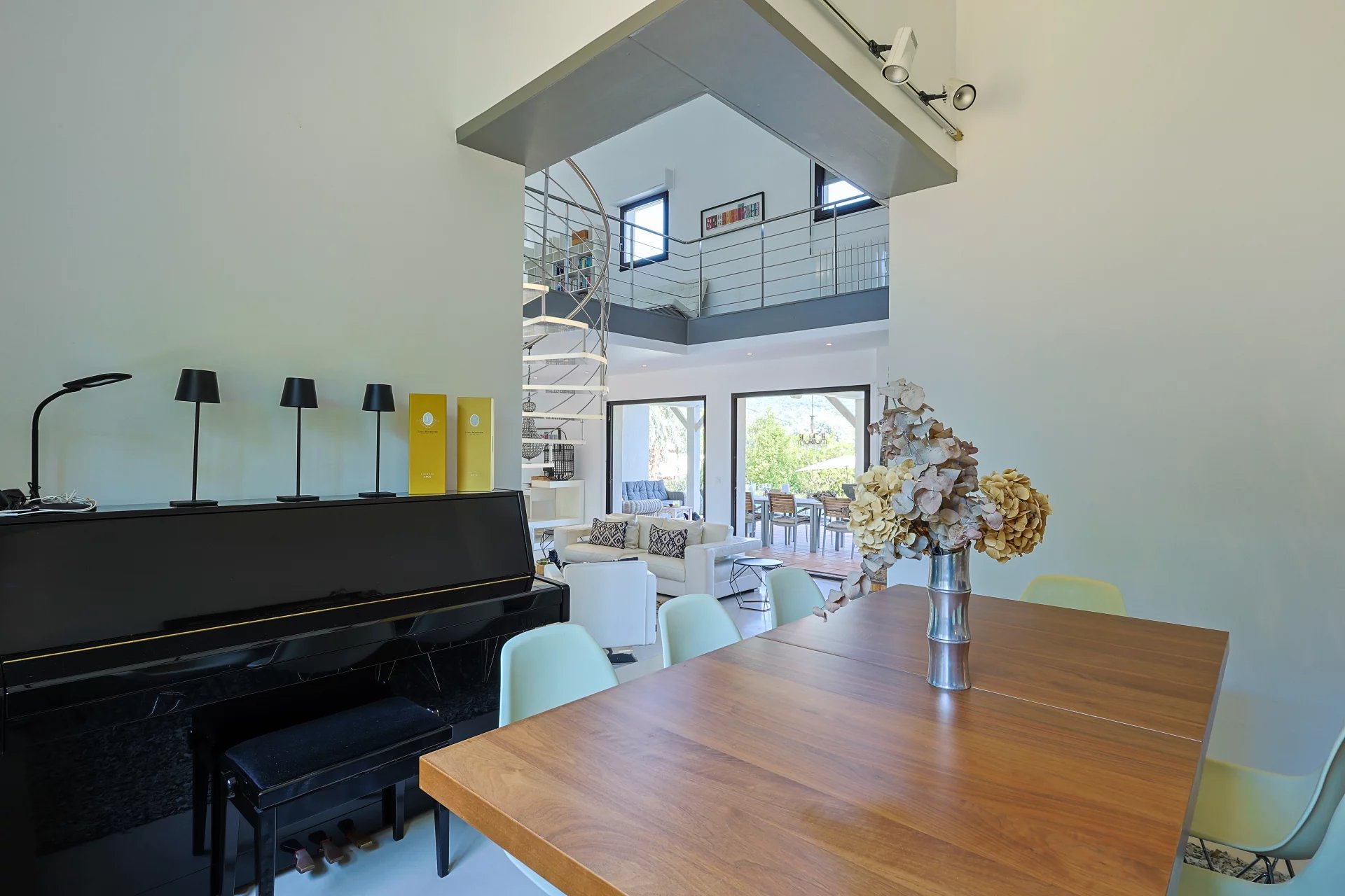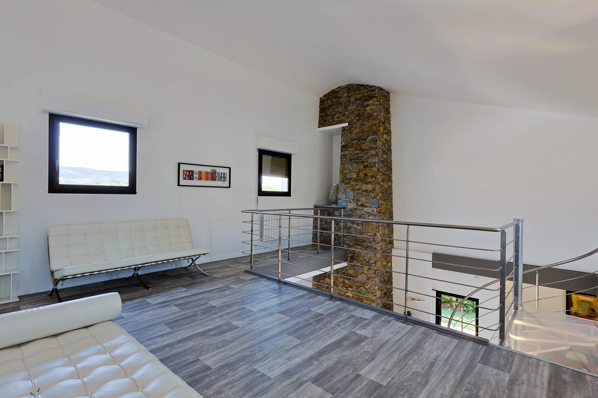 EXCLUSIVE SALE by Med Estates: Discover this villa in Le Plan de la Tour, located in a quiet hamlet on a 1,350 m² plot of beautifully landscaped gardens surrounding a pristine 12 x 6 m heated pool. This 160 m² property offers the perfect vacation retreat or family home, featuring three comfortable ensuite bedrooms and a large lounge with a separate dining area flanked by a cozy stone fireplace. The lounge leads to a shaded, covered terrace overlooking the pool, offering seamless indoor-outdoor living space in both winter and summer. There is a mezzanine area that is ideal for a TV room or could be converted into an additional bedroom. The property also includes a fourth bathroom with access to the pool, along with storage and a laundry room. The garage is equipped with electric doors and has a loft area for extra storage. The entrance is secured by electric gates, and the property is fully fenced. There is a possibility of extension according to the PLU, as it is located in zone UC.