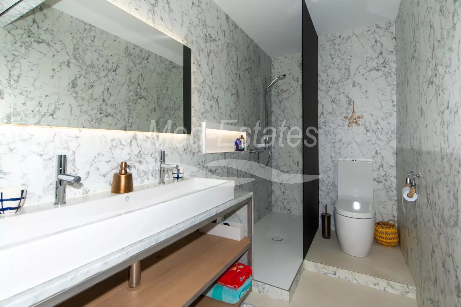 Savourez l'extérieur sur les plusieurs terrasses pour se détendre et un jardin paysager offrant un cadre pittoresque. Apreçue vue mer; les plages et le club de sports ( voile etc) se trouvent à 500m! La piscine en copropriété complète cette expérience de vie haut de gamme.