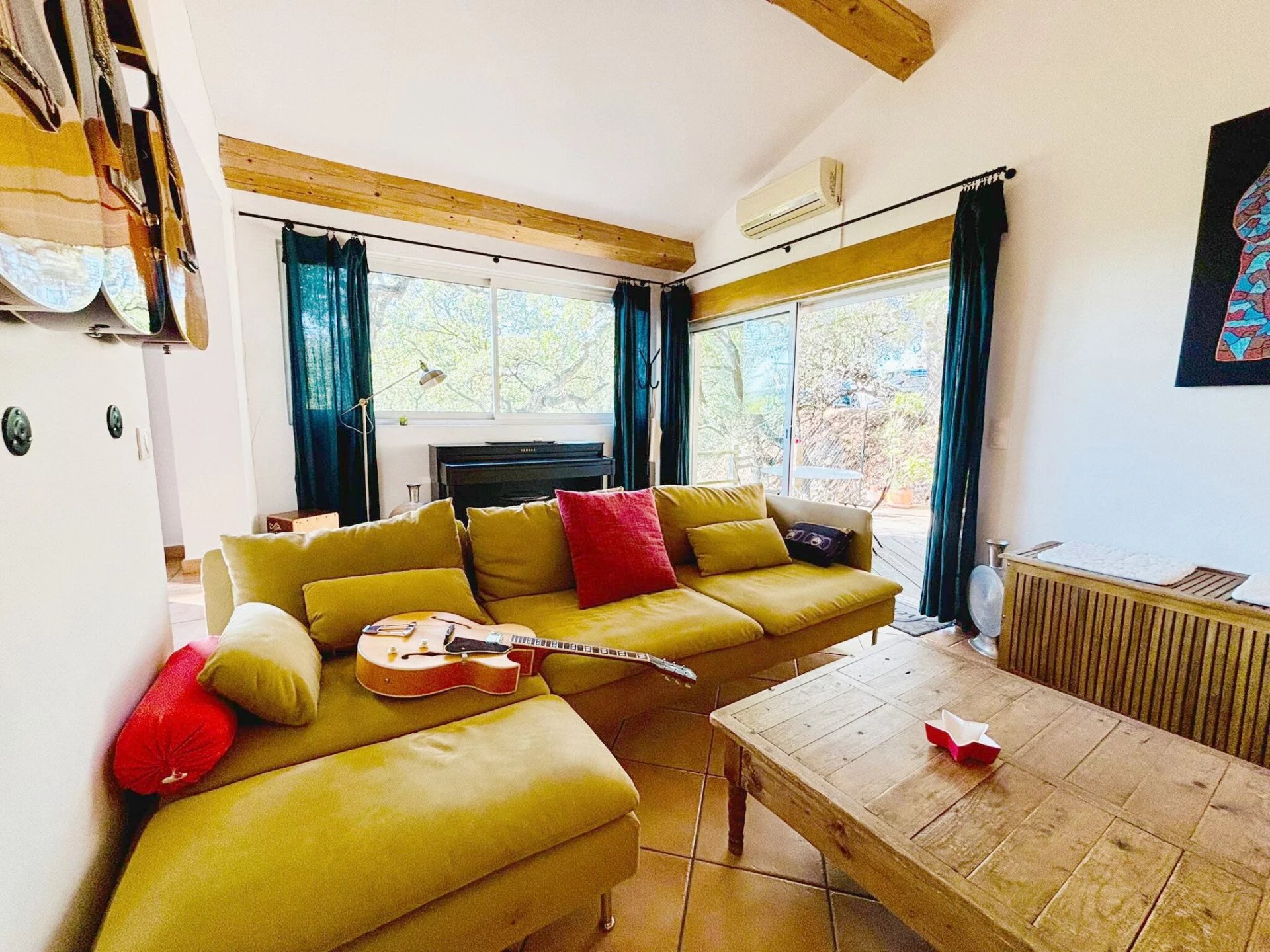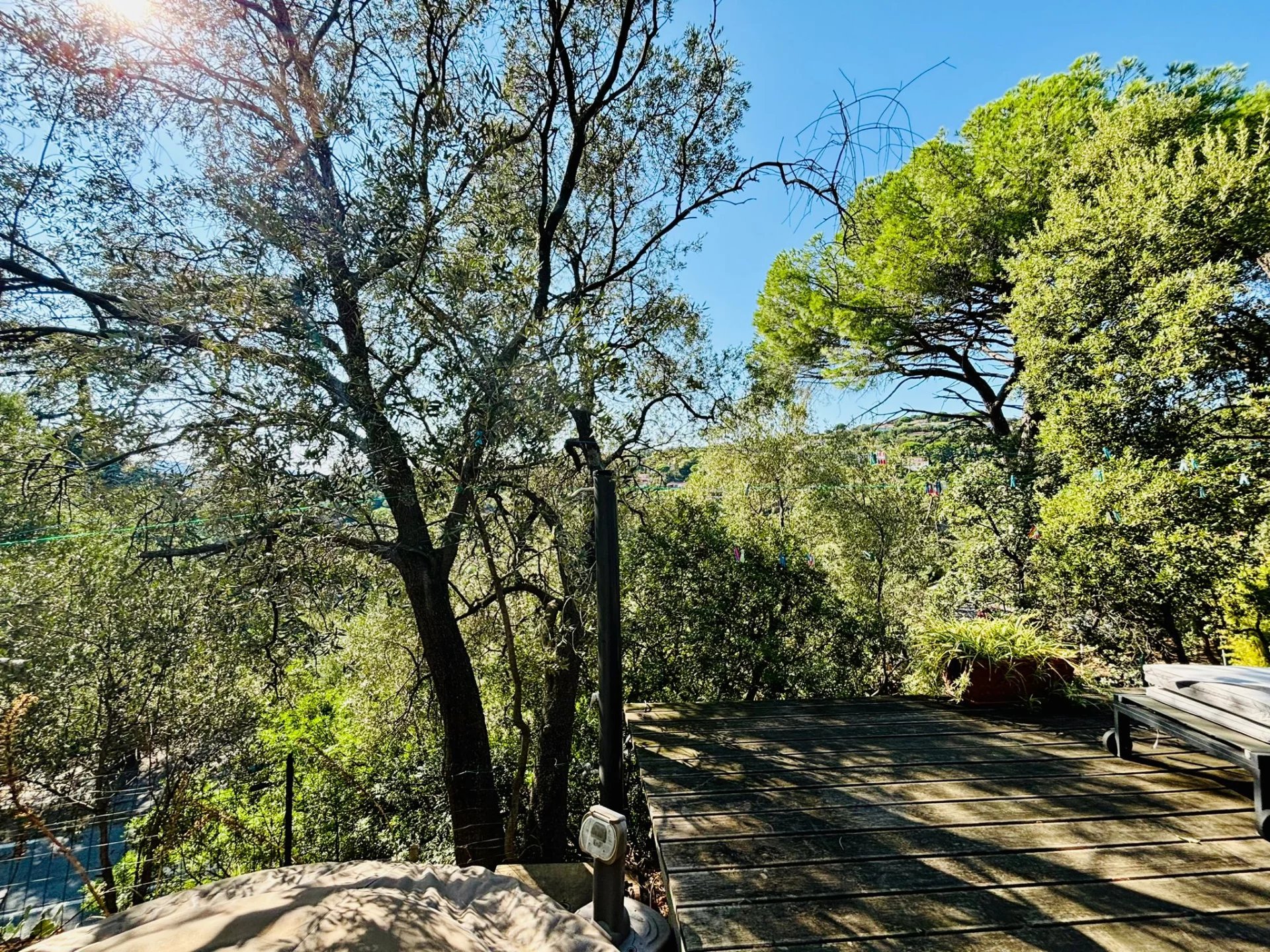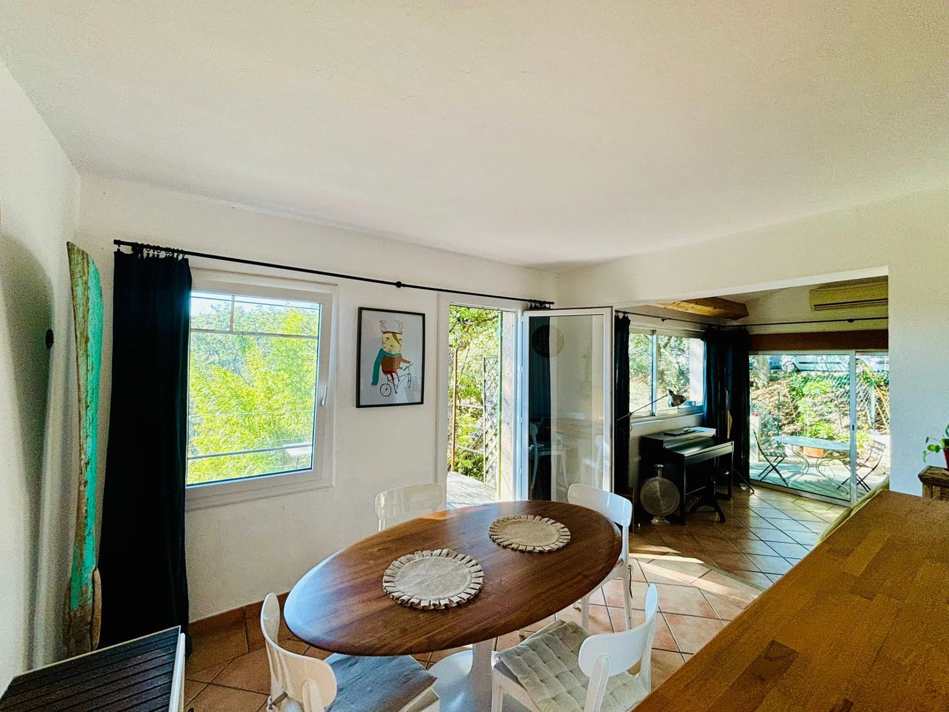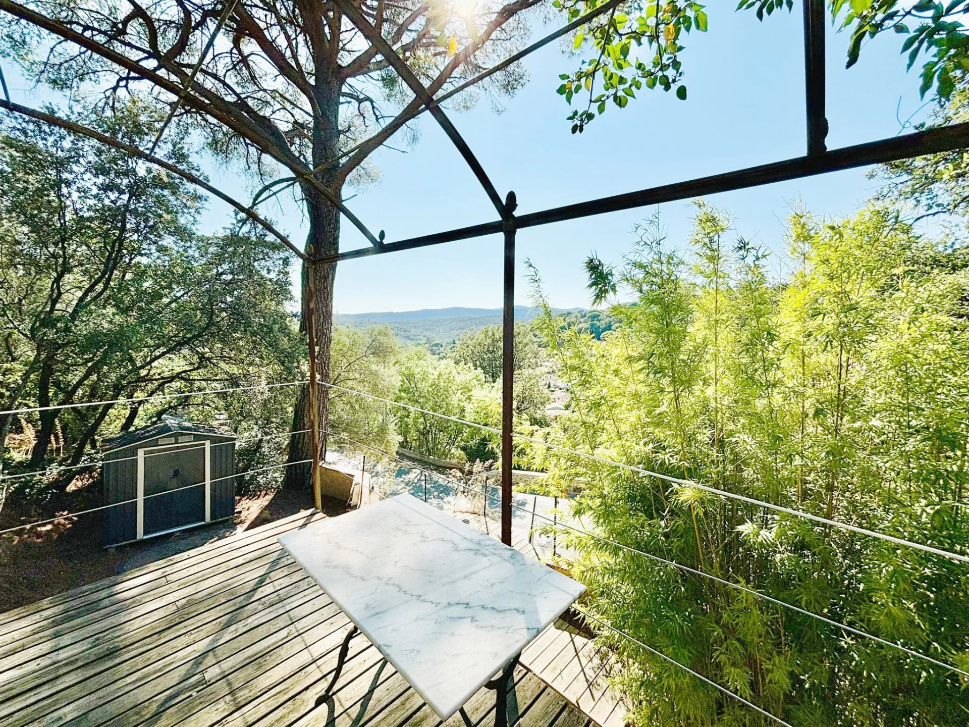 Cette maison a Grimaud est facilement accessible et offre de belles vues. L'orientation est sud. La maison comprend deux unités de vie séparées. Chaque unité de vie a sa propre terrasse. Au rez-de-chaussée, vous trouverez une cuisine avec salle à manger et accès à une terrasse spacieuse, un salon, des toilettes et une salle d'eau.