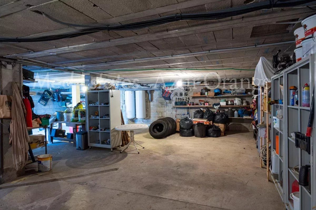 Sous la maison se trouve un sous-sol (120m²) qui peut être utilisé comme garage. La maison peut accueillir 7 voitures supplémentaires. 3 places de parking couvertes.